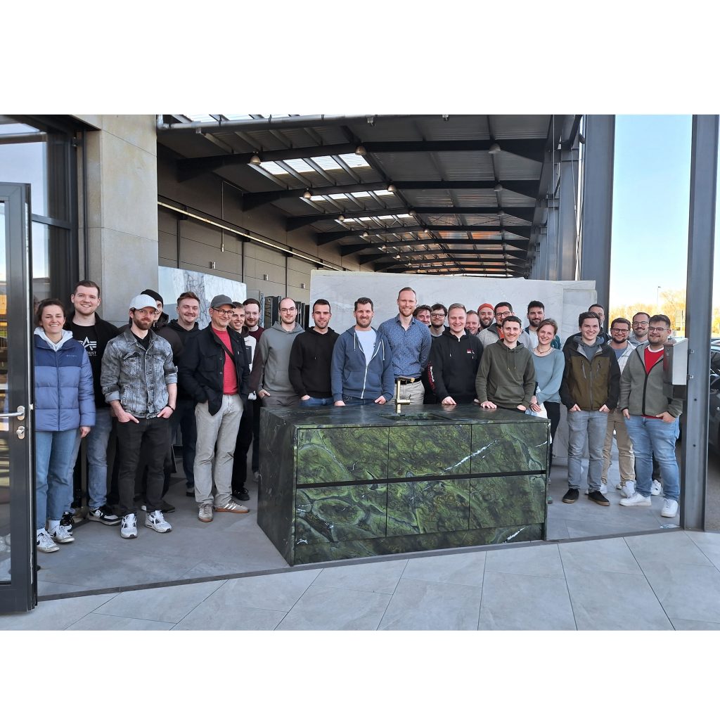 Im weiteren Verlauf erhielten die angehenden Schreinermeister einen praxisnahen Einblick in die Verarbeitung und Konfektion bei Dinger Stone. Danach folgte ein Rundgang durch unsere Ausstellung, bei dem unterschiedliche Anwendungen und Gestaltungsmöglichkeiten vorgestellt wurden. Ein besonderes Highlight war die Besichtigung unseres Plattenlagers sowie der Produktion, wo die Teilnehmenden die Abläufe im Werk direkt erleben konnten.